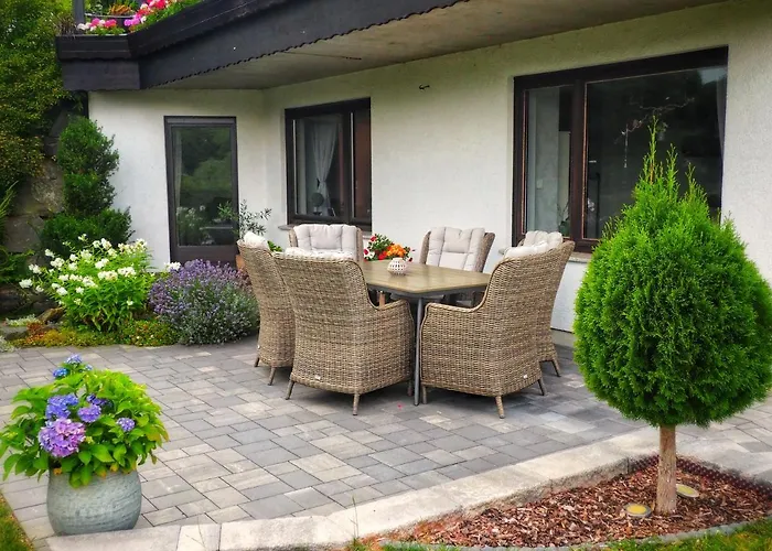 Dorfidylle - Thuringer Wald Rennsteig appartementen van 60 m^2, gelegen op 3 km van het stadscentrum van Friedrichroda, bieden logeerkamers met uitzicht op de tuin. Bij het appartement is wifi en privé parkeergelegenheid beschikbaar.